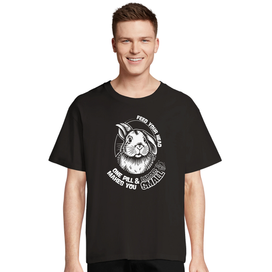 White Rabbit B-0001-B | Unisex Oversized Black T-shirt