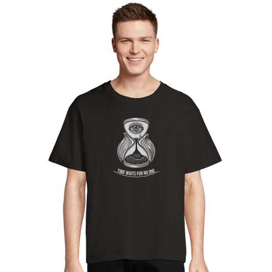 Time Waits For No One B-0006-B | Unisex Oversized Black T-shirt