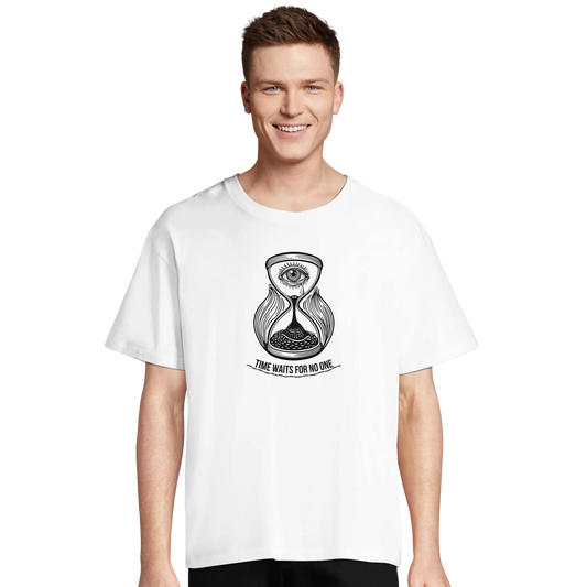 Time Waits For No One B-0006-W | Unisex Oversized White T-shirt