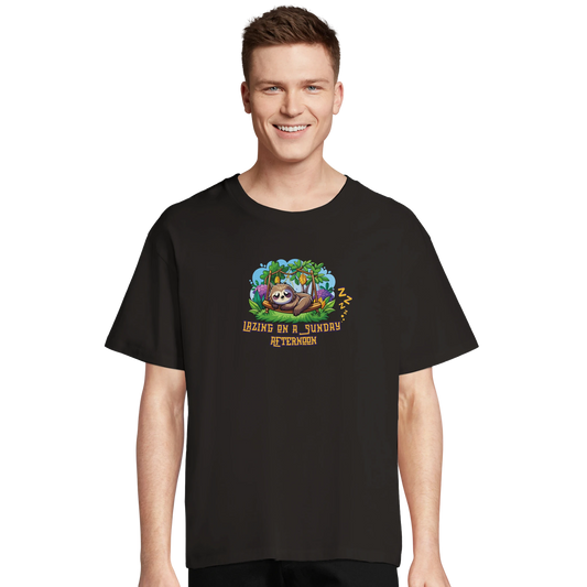 Lazing On A Sunday Afternoon C-0001-B | Unisex Oversized Black T-shirt