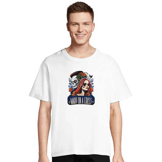 Mary On A Cross C-0007-W | Unisex Oversized White T-shirt