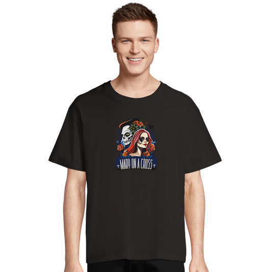 Mary On A Cross C-0007-B | Unisex Oversized Black T-shirt